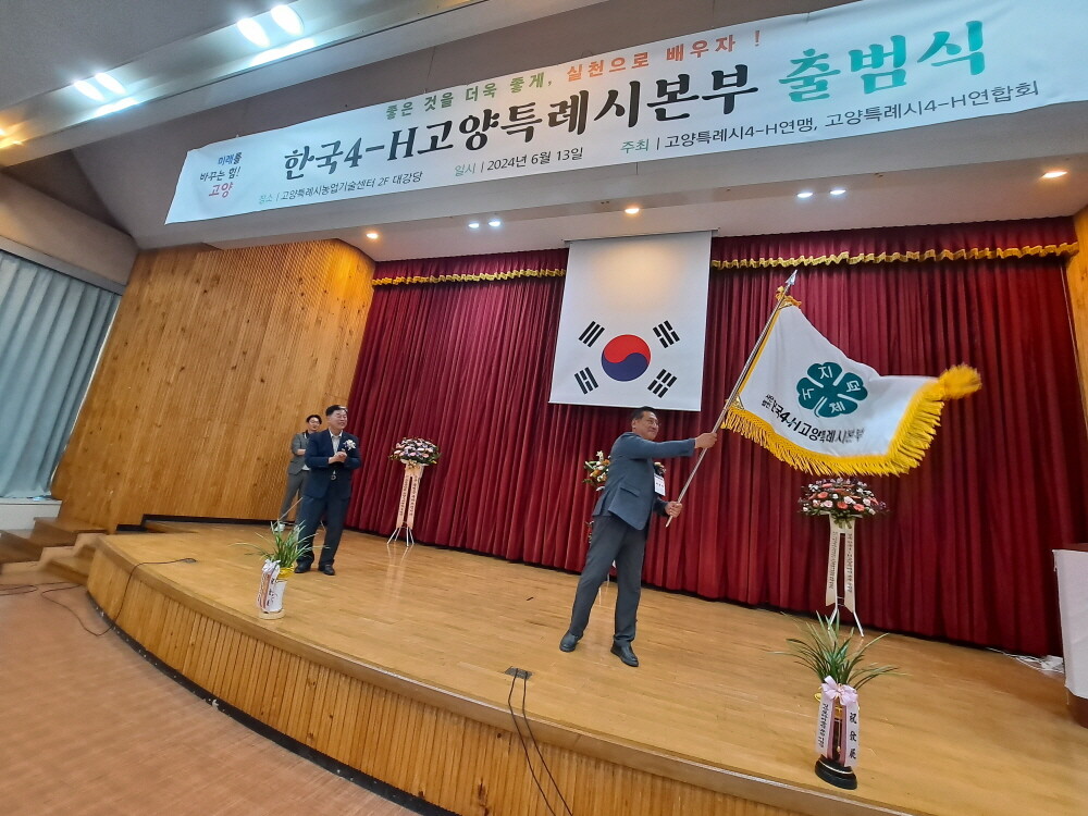 출범식은 고양특례시의회 김영식 의장, 한국4-H경기도본부 김종필회장, 농협중앙회 고양특례시 오영석 지부장 등 내빈과 4-H지도자 및 회원 80여명이 참석한 가운데 개회식, 4-H서약 제창, 4-H본부기 전달, 격려사 순으로 진행됐다.