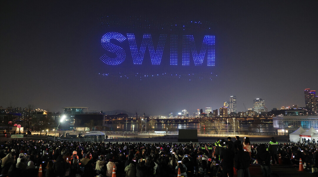 [부자동네타임즈 = 이병도 기자] 방탄소년단(BTS)의 완전체 컴백 공연을 하루 앞둔 20일 밤 서울 뚝섬한강공원에서 관련 드론쇼가 펼쳐지고 있다. 2026.3.20