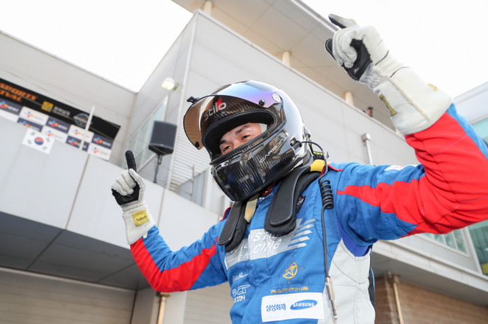 [사진설명] 삼성화재 6000 클래스 7라운드 결승에서 우승을 차지한 최광빈이 기쁨의 세리머니를 하고 있다.