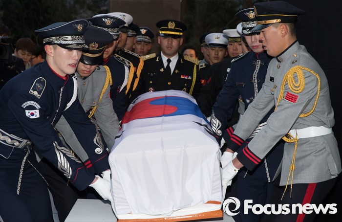 안장식은 △고인에 대한 경례 △헌화 및 분향 △제단에서 묘소예정지까지 운구 △하관 및 예배 △허토·조총·묵념 순으로 진행됐다.