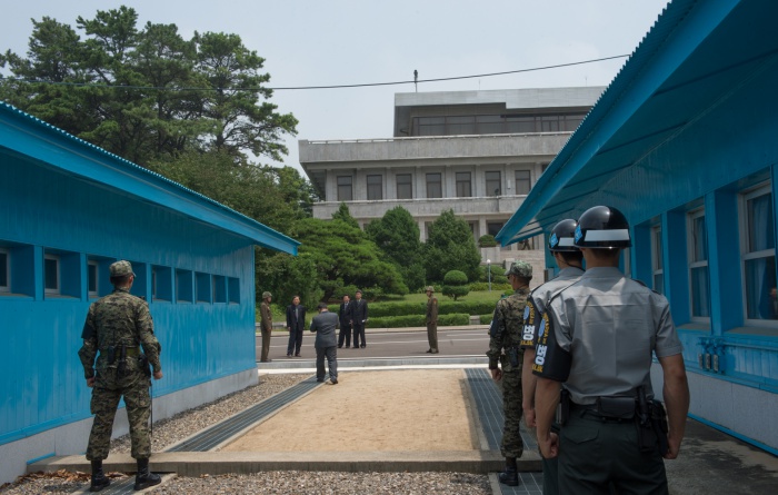 | △ 판문점에서 대치하고 있는 남북한 군인들. <사진제공=포커스뉴스> |