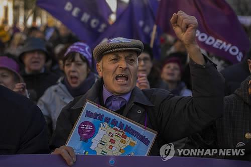 현지 일간지 엘파이스는 이날 스페인 각지에서 올라온 수만 명의 시민이 신생 좌파 정당인 '포데모스'(Podemos, 우리는 할 수 있다)가 주최한 '변화를 위한 행진'에 참가했다고 보도했다.