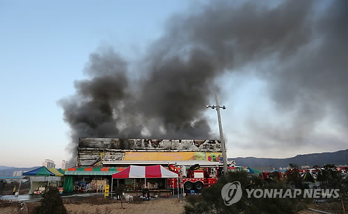 마트 사장과 임대차 계약 문제로 다투던 김씨가 사장이 나간 뒤 사무실 문을 잠근 채 몸에 시너를 뿌리고 불을 붙여 화재가 발생한 것으로 경찰과 소방 당국은 추정하고 있다.