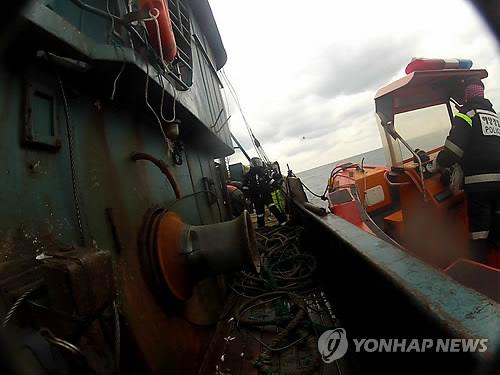 | △ 해양안전경비안전서 관계자들이 불법 조업 중인 중국어선을 검문검색 하고 있다. |