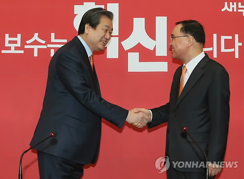 (서울=연합뉴스) 류미나 기자 = 새누리당 김무성 대표는 3일 정홍원 국무총리의 이임인사를 받고 "마음껏 돕지 못했다"며 아쉬움을 표했다.