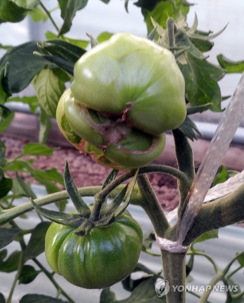 (부산=연합뉴스) 김선호 기자 = 토마토 주산지인 부산 강서구에서 불량 종자 때문에 기형 열매가 속출해 농민들의 피해가 잇따르는 가운데 국내산 종자 개량이 시급하다는 지적이 일고 있다.