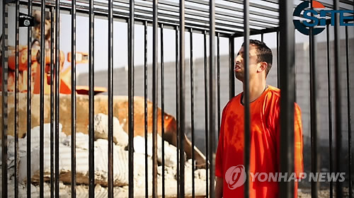 (이스탄불=연합뉴스) 김준억 특파원 = 수니파 원리주의 무장단체 '이슬람국가'(IS)가 지난해 12월 생포한 요르단 조종사를 불질러 살해한 영상을 3일(현지시간) 공개했다.