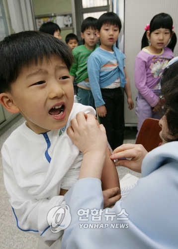 | △ 서울 송파구 보건소 직원이 13일 오전 가락초등학교에서 1학년 학생들에게 BCG(결핵예방접종) 예방접종을 실시하고 있다./송파구청 제공/사회/ 2006.4.13 (서울=연합뉴스) < |