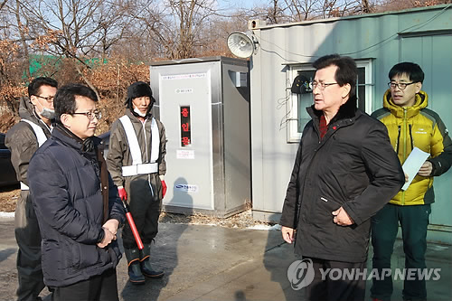 | △ 방역관계자 격려하는 이시종 지사 (청주=연합뉴스) 이시종(오른쪽에서 두번째) 충북도지사가 구제역 방역을 위해 충북 괴산군에 설치된 거점소독소를 방문해 방역활동에 힘쓰는 방역관계자들을 격려하고 있다. <<연합뉴스 DB>> |