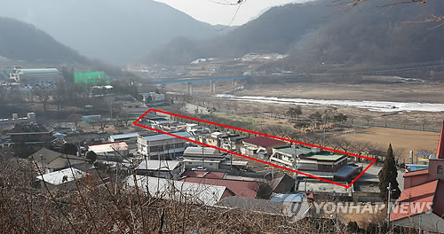 당시 한국수자원공사가 이곳에 남은 주민을 위한 생계 대책으로 댐 저수구역 내 2천513㎡ 부지에 하천 점용 허가를 내주고 지금의 하천변 단층 규모 상가 9곳을 지어 장사할 수 있도록 배려했기 때문이다.