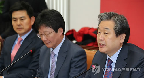 | △ 김무성, "국민합의 통해 새로운 복지모델 만들어야" (서울=연합뉴스) 백승렬 기자 = 새누리당 김무성 대표가 4일 국회에서 열린 최고·중진연석회의에서 국민적 합의를 토대로 국가 재정건전성을 감안해서 우리나라 실정에 맞는 새로운 복지모델을 만들어야 한다고 주장하고 있다. |