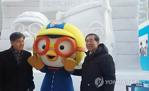 일본을 방문 중인 박원순 서울시장은 5일 홋카이도 삿포로 눈축제 현장을 찾아 한쪽에 마련된 뽀로로, 타요버스 등 서울을 대표하는 애니메이션 설상(雪像, 눈으로 만든 상) 앞에서 일일 홍보대사로 나섰다.