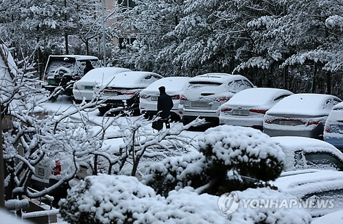 | △ 가뭄 심한 동해안에 눈 (강릉=연합뉴스) 유형재 기자 = 심한 가뭄에 시달리는 강원 동해안 지역에 5일 대설주의보가 내려진 가운데 눈이 내려 고성 간성 12.5㎝, 북강릉 7.4㎝, 강릉 3.5㎝ 등의 적설량을 기록했다. 눈이 대부분 그친 강릉시 교동의 한 아파트에서 주민들이 출근을 위해 차에 쌓인 눈을 치우고 있다. 2015.2.5 yoo21@yna.co.kr |