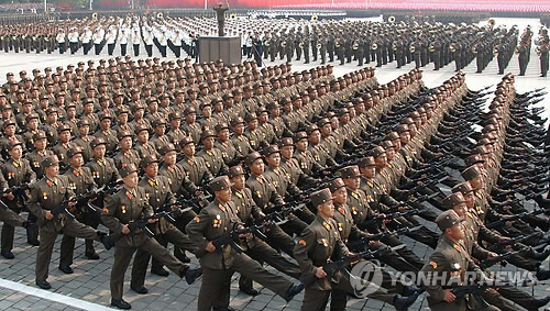 | △ 2014 국방백서 '북한군 병력 120만명...국군의 2배' (서울=연합뉴스) 국방부는 6일 발간한 '2014 국방백서'에서 북한군 병력은 국군의 2배 수준인 120만명으로 늘었고 전차와 장갑차, 방사포 등 지상 전력과 전투함 등 해상 전력도 증강된 것으로 분석했다. 북한 평양 김일성광장에서 열린 열병식. 2015.1.6 << 연합뉴스 DB>> photo@yna.co.kr |