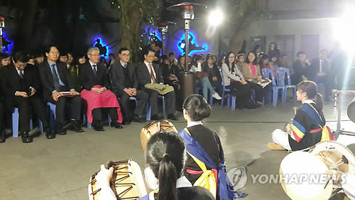 | △ 베트남 한류 체험 나선 김종덕 문화체육관광부 장관 (하노이=연합뉴스) 김권용 특파원 = 베트남을 방문 중인 김종덕 문화체육관광부 장관이 6일 하노이 시내 한국문화원 구내에서 베트남 대학생들의 사물놀이 공연을 관람하며 박수를 치고 있다. 김 장관은 앞서 롯데센터 하노이에서 열린 문화 콘텐츠 간담회에서 "우리의 콘텐츠를 일방적으로 전하는 종전의 태도에서 벗어나야 한다"며 "베트남의 화려한 문화를 받아들여 우리의 문화도 살찌워야 한다"고 강조했다. 2015.2.6 kky@yna.co.kr |