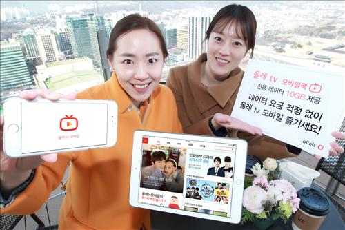 (서울=연합뉴스) 전성훈 기자 = KT[030200]는 스마트폰으로 다양한 영상 콘텐츠를 시청할 수 있는 올레tv 모바일팩의 데이터 제공량을 6GB에서 10GB로 확대한다고 8일 밝혔다.