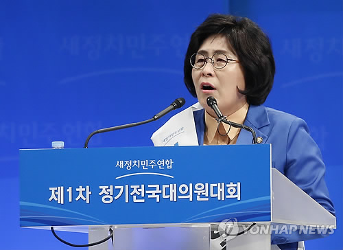 | △ 지지 호소하는 유승희 최고위원 후보 (서울=연합뉴스) 이상학 기자 = 새정치민주연합 유승희 최고위원 후보가 8일 서울 송파구 올림픽체조경기장에서 열린 제1차 정기전국대의원대회에서 지지를 호소하고 있다. 2015.2.8 leesh@yna.co.kr |