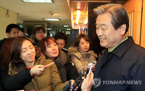 | △ 야당 대표 당선 입장 밝히는 김무성 대표 (서울=연합뉴스) 홍해인 기자 = 새누리당 김무성 대표가 8일 오후 서울 여의도의 한 일식당에서 열린 당 지도부-최고위원 만찬에 참석하며 새정치민주연합 문재인 대표 당선에 대한 입장을 밝히고 있다. 2015.2.8 hihong@yna.co.kr |