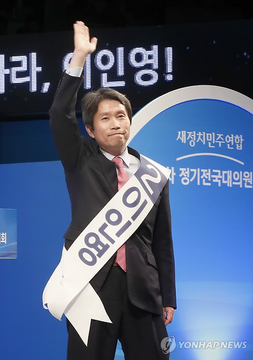 | △ 지지 호소하는 이인영 후보 (서울=연합뉴스) 이상학 기자 = 새정치민주연합 이인영 당대표 후보가 8일 서울 송파구 올림픽체조경기장에서 열린 제1차 정기전국대의원대회에서 지지를 호소하고 있다. 2015.2.8 leesh@yna.co.kr |