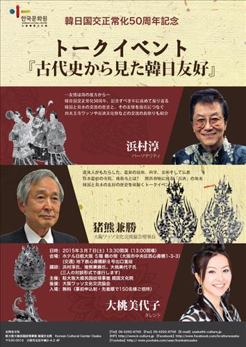 주오사카 한국문화원(원장 박영혜)은 오는 3월 7일 오후 오사카 닛코호텔에서 '고대사로 본 한일 우호'란 제목으로 토크 이벤트를 마련한다.