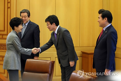 (서울=연합뉴스) 이승우 박성민 기자 = 박근혜 대통령은 10일 오전 11시 청와대로 새누리당 김무성 대표와 신임 유승민 원내대표, 원유철 정책위의장을 불러 회동한다.