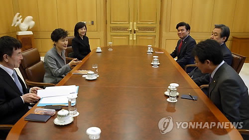 박 대통령은 이날 회동에서 "지금 경제가 어렵다"며 "경제활성화를 하루 빨리 이뤄내기 위해선 국회의 협조가 절실하고, 새누리당이 그런 역할을 강화해줬으면 좋겠다"고 당부한 것으로 전해진다.
