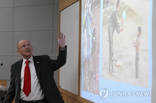 | △ 강연하는 렘케 유엔 스포츠 특별보좌관 (서울=연합뉴스) 서명곤 기자 = 반기문 유엔 사무총장의 스포츠 특별보좌관인 윌프리드 렘케(독일)가 18일 오후 서울 관악구 신림동 서울대학교 교육정보관에서 '사회 발전과 평화 증진 도구로서 스포츠의 역할과 방법'을 주제로 강연을 하고 있다. |
