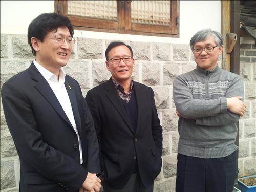 | △ 왼쪽부터 김근수 해방신학연구소장, 조성택 고려대 철학과 교수(화쟁문화아카데미 대표), 김진호 제3시대그리스도교연구소 연구실장. |