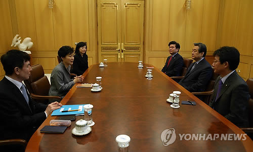 한편 박 대통령은 이날 회동에서 "지금 경제가 어렵다"며 "경제활성화를 하루 빨리 이뤄내기 위해선 국회의 협조가 절실하고, 새누리당이 그런 역할을 강화해줬으면 좋겠다"고 당부한 것으로 전해진다.