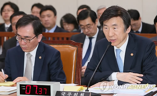 | △ 답변하는 윤병세 외교장관 (서울=연합뉴스) 진성철 기자 = 윤병세 외교부 장관이 10일 국회 외교통일위원회에서 질의에 답변하고 있다. 왼쪽은 조태열 2차관. |