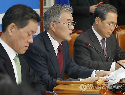 문 대표는 이날 최고위원회의에서 "이번 판결로 국정원의 조직적 대선개입이 확인됐다"며 "사이버사령부의 대선개입과 (남북정상회담) 대화록 불법 유출 및 악용을 종합해 보면 국가기관의 전방위적 대선개입이 확인됐다"고 주장했다.