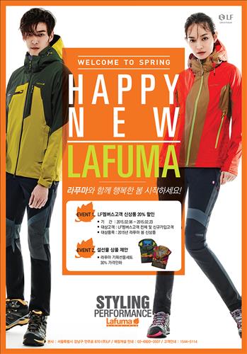 (서울=연합뉴스) 전준상 기자 = LF(www.lfcorp.com)가 전개하는 프랑스 아웃도어 브랜드 라푸마는 23일까지 '해피 뉴 라푸마 프로모션'을 진행한다고 11일 밝혔다.