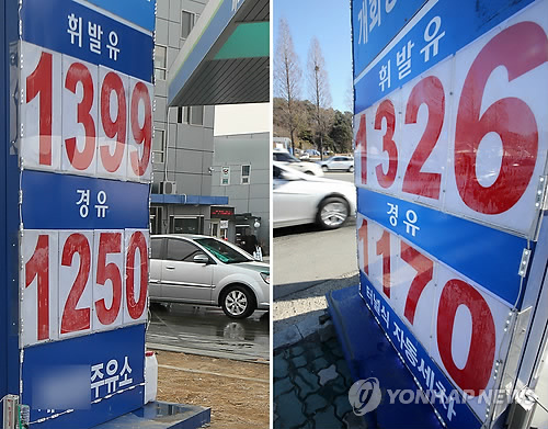 공급가 인상 전인 지난 9일 대비 1천200원대 주유소는 18곳, 1천300원대 주유소는 667곳이 줄어든 셈이다.