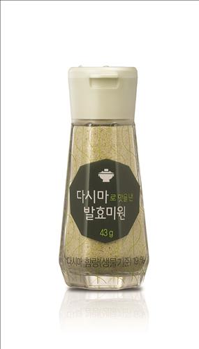 기존 발효미원이 흰색의 길쭉한 과립 형태지만, 신제품은 다시마 가루를 첨가해 연녹색을 띠는 둥근 형태다.