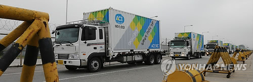 | △ 2014년 9월 북으로 가는 대북지원 물품 (파주=연합뉴스) |