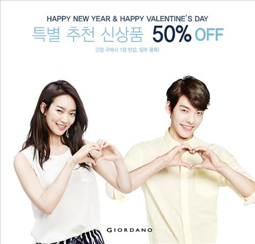 (서울=연합뉴스) 고유선 기자 = SPA(제조·유통 일괄형) 브랜드 지오다노는 밸런타인데이와 설을 맞아 18일까지 일부 신상품을 50% 할인 판매한다고 12일 밝혔다.