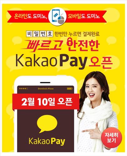 (서울=연합뉴스) 최이락 기자 = 한국도미노피자는 외식브랜드 최초로 다음카카오의 간편 결제 서비스 '카카오페이'를 도입했다고 12일 밝혔다.