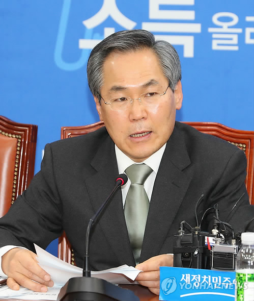 | △ 우윤근 "새누리당, 총리인준에 동의해선 안돼" (서울=연합뉴스) 백승렬 기자 = 새정치민주연합 우윤근 원내대표가 12일 국회에서 열린 정책조정회의에서 이완구 총리후보자 인준안 처리 문제와 관련, "우리 당은 무엇보다도 국민 뜻과 요구를 거스를 수 없고 거슬러서도 안된다"면서 "새누리당도 국민의 뜻을 거슬러서 총리 인준에 동의해서는 안 된다"고 주장하고 있다. |