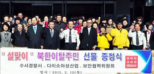 (서울=연합뉴스) 임은진 기자 = 다이소아성산업은 설을 앞두고 12일 수서경찰서에서 관내 새터민과 저소득층 주민 300여명에게 다이소의 생활용품(2천만원 상당)을 전달했다. 수서경찰서는 떡국 500인분을 준비해 주민과 나눴다.