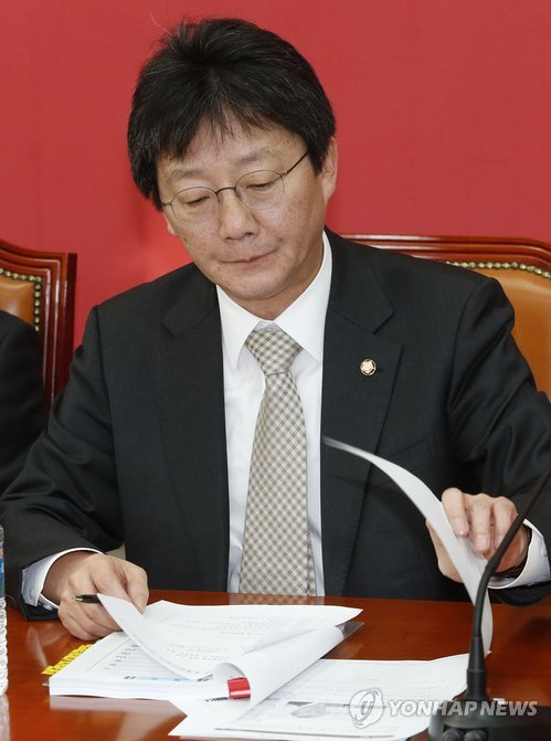 | △ 여론조사 제안 보도 바라보는 유승민 원내대표 (서울=연합뉴스) 이상학 기자 = 새누리당 유승민 원내대표가 13일 오전 국회에서 열린 원내대책회의에서 이완구 총리 후보자 인준 관련 새정치민주연합 문재인 대표의 여론조사 제안 보도를 살펴보고 있다. 2015.2.13 leesh@yna.co.kr |