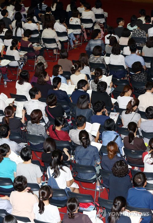| △ 한 특목고 입시설명회에 참석한 학부모와 학생들이 자료를 살펴보고 있다. |