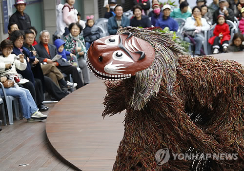 | △ 북청사자놀음 보존회 회원들의 멋진 공연.(연합뉴스 자료사진) |