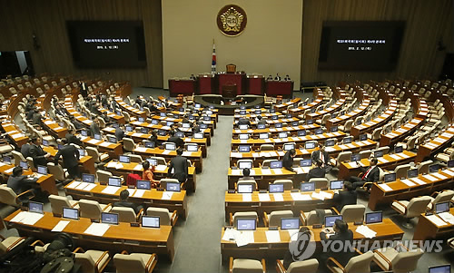 | △ 새누리당 의원들이 총리인준안 표결 위해 지난 12일 국회 본회의장에 앉아 있다. |
