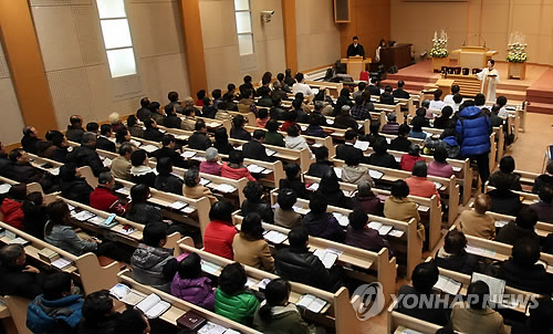 | △ 주말 예배 드리는 진천 중앙장로교회 신도들 (진천=연합뉴스) 김형우 기자 = 이집트 폭탄 테러 피해를 본 충북 진천군 중앙 장로교회에서 주말 예배가 열리고 있다. <<연합뉴스 DB>> |
