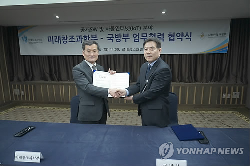미래창조과학부와 국방부는 16일 이같은 내용의 '공개 소프트웨어(SW)와 사물인터넷(IoT) 관련 기술개발·활용 촉진을 위한 협력 양해각서'를 체결했다고 밝혔다.