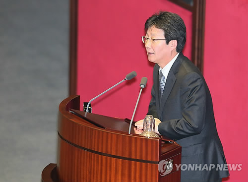 | △ 국회 운영위원장에 유승민 (서울=연합뉴스) 진성철 기자 = 국회 운영위원장에 선출된 새누리당 유승민 원내대표가 16일 국회 본회의장에서 인사말하고 있다. |