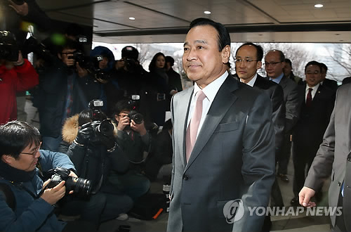 | △ 정부서울청사 들어서는 이총리 (서울=연합뉴스) 전수영 기자 = 이완구 신임 총리가 17일 오전 서울 세종로 정부서울청사로 첫 출근하고 있다. 이총리는 출근 소감을 묻는 취재진의 질문에 "국민 뜻을 잘 받들어서 열심히 하겠다"고 밝혔다. |