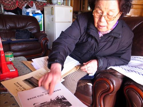 | △ 양민학살로 아버지 잃은 박옥희씨 (서울=연합뉴스) 황철환 기자 = 6·25 전쟁 당시 양민학살로 아버지를 잃은 박옥희(82·여)씨. 2015.2.17. hwangch@yna.co.kr |