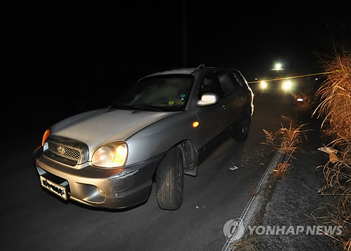 | △ 경남 거제에서 일가족 5명이 차량 안에 숨진 채 발견돼 경찰이 조사에 나섰다. 사진은 이들이 타고 있던 산타페 차량. |