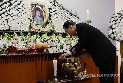 | △ 조문하는 김기춘 실장 (서울=연합뉴스) 김수진 기자 = 김기춘 청와대비서실장이 22일 오전 서울 아산병원 장례식장에 마련된 김종필(JP) 전 국무총리의 부인 故 박영옥 씨의 빈소를 찾아 조문하고 있다. |